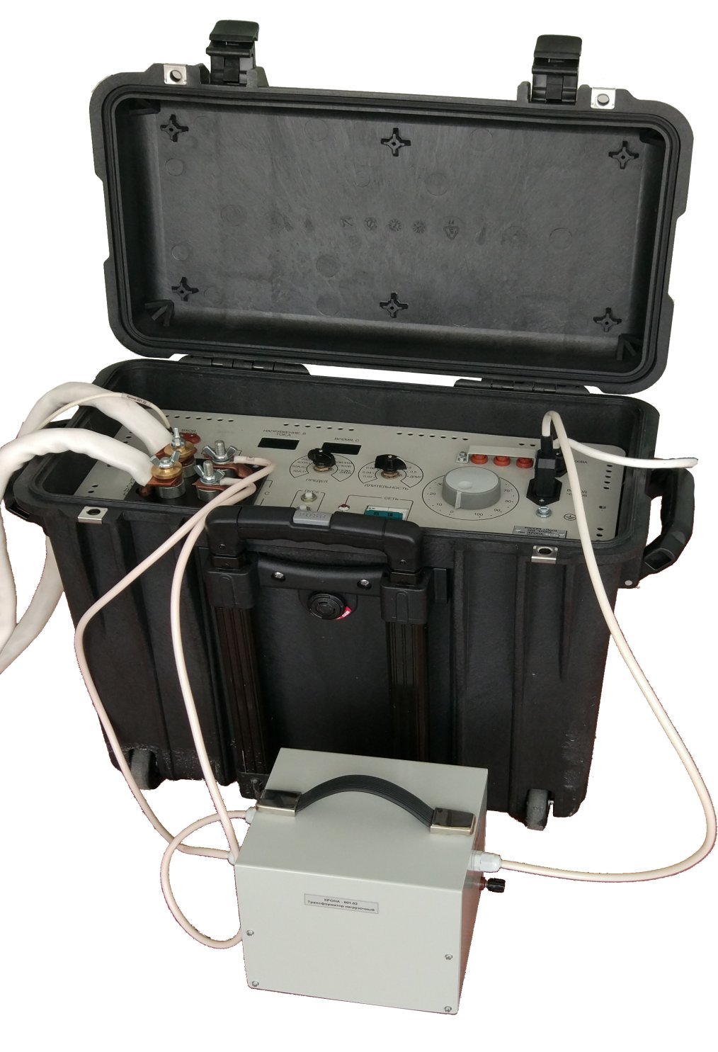 Обеспечивается прогрузочный ток до 600А или до 2000А, в зависимости от типа исполнения (см. также прибор «Крона-603» с током прогрузки до 4000А).